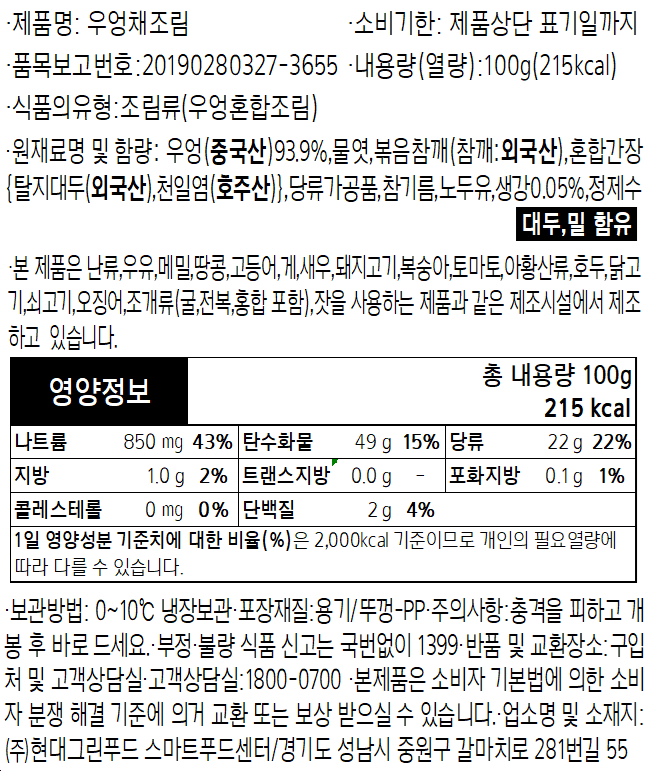 우엉채조림 100g