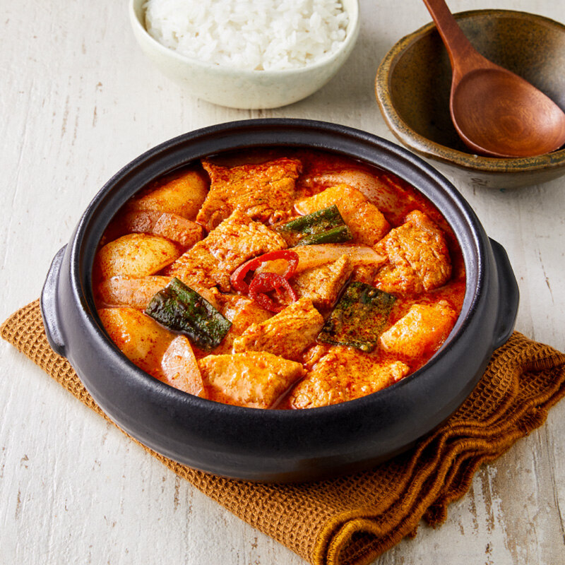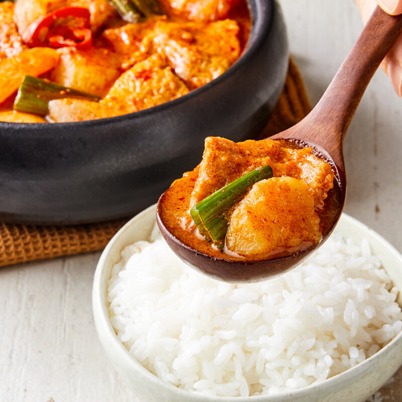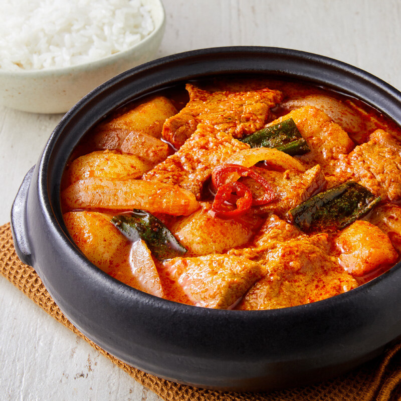 큼직하게 숭덩숭덩 썰어낸 건더기부터 자작하게 졸아든 국물까지, 보기만해도 국침이 도는 충청도식 짜글이를 소개해요. 멸치, 채소 육수와 보리 고추장 소스로 만든 진한 국물에 돼지고기, 감자, 양파, 대파, 고추 등 다채로운 재료를 넣어 준비했죠.
