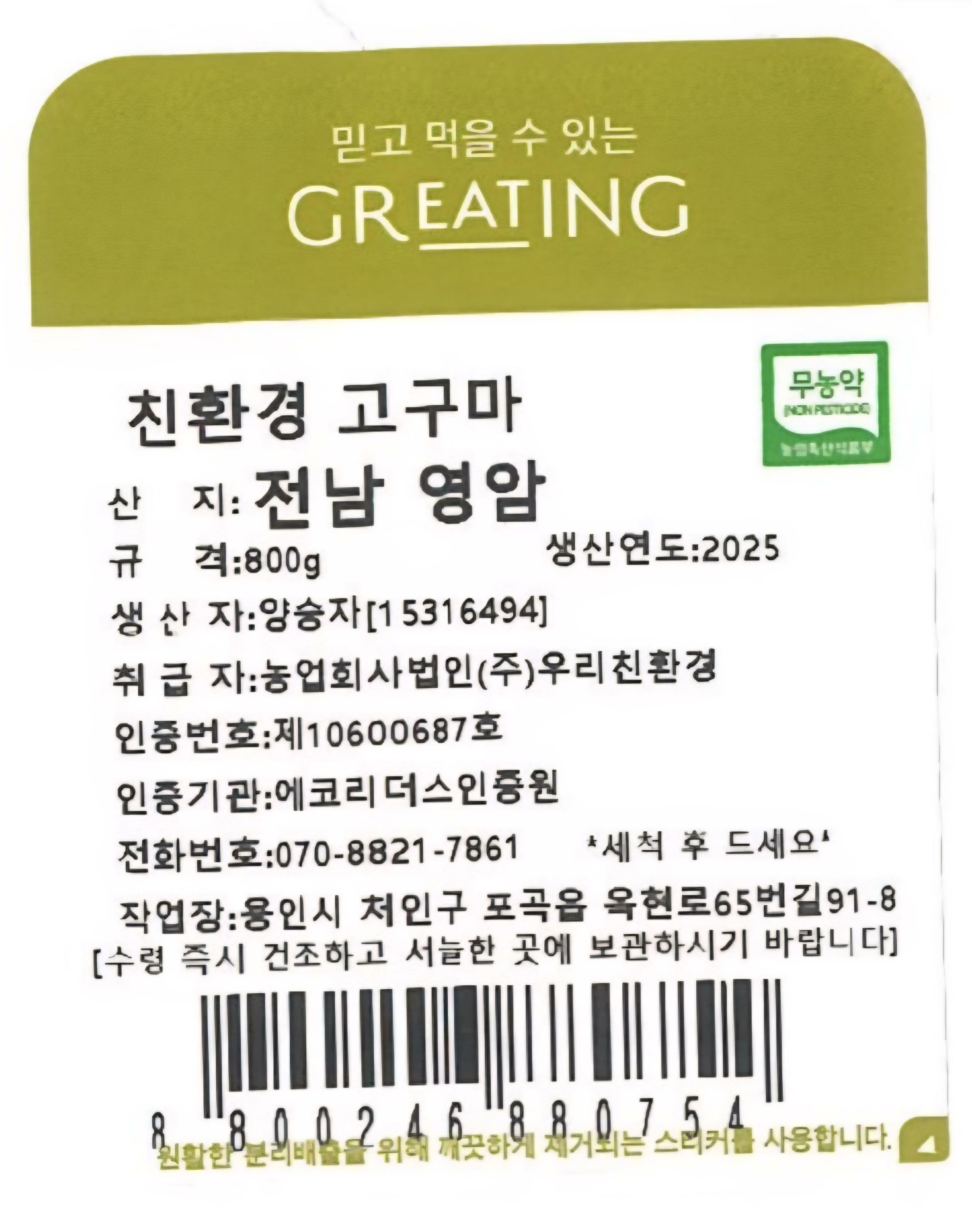 [그리팅] 친환경 고구마 800g
