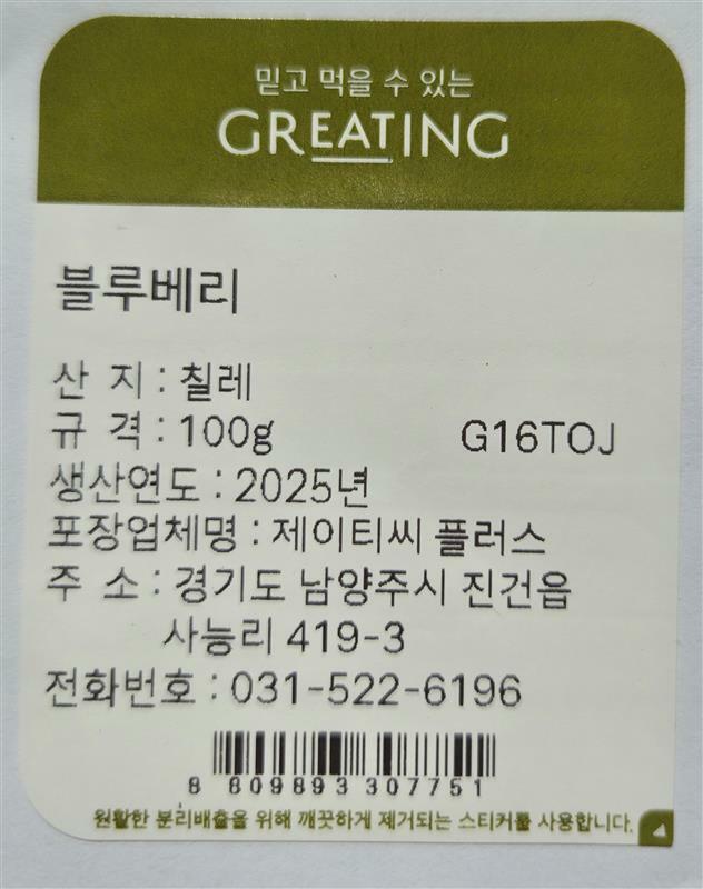 [그리팅] 블루베리 100g