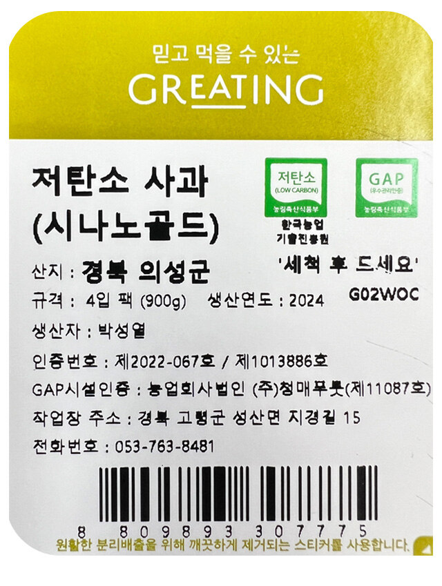 [그리팅] 저탄소 시나노골드 사과 900g(4입)