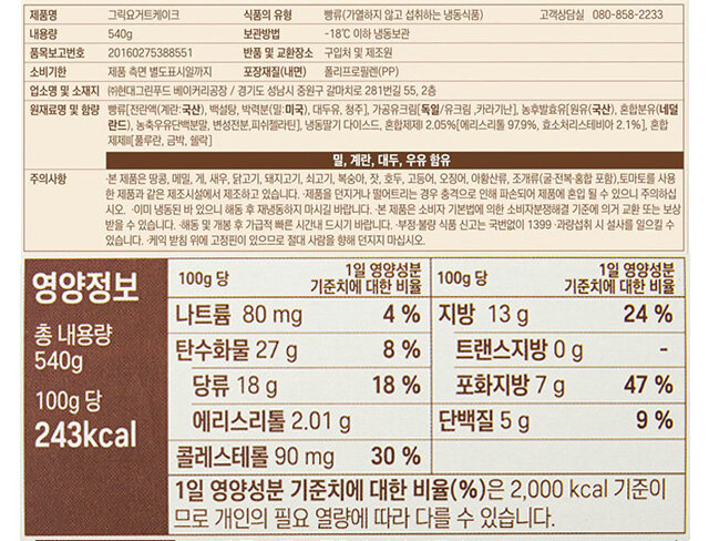 [모두의맛집] VEZZLY 그릭요거트 케이크 540g