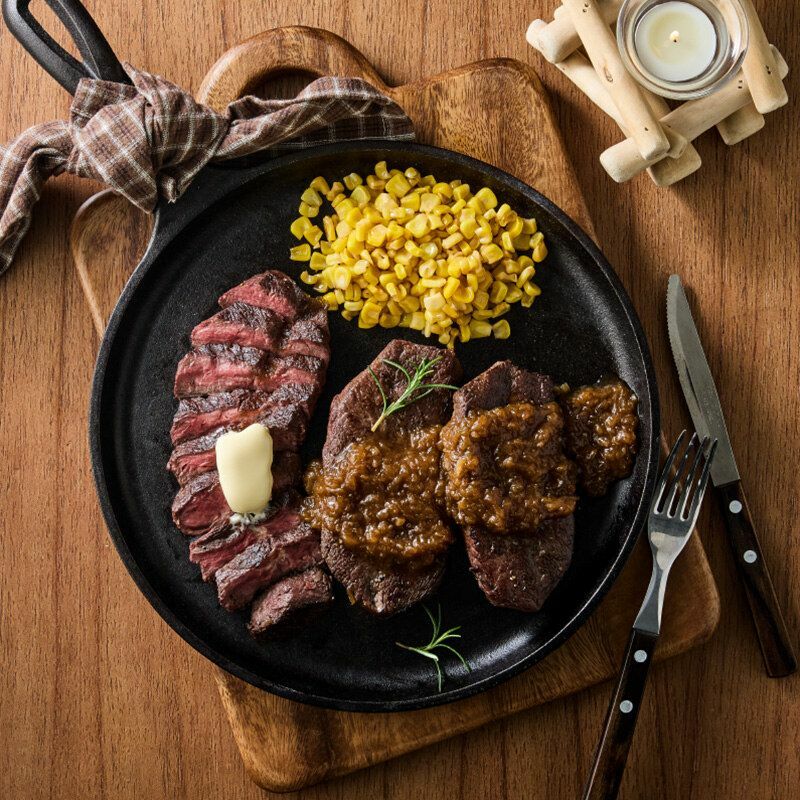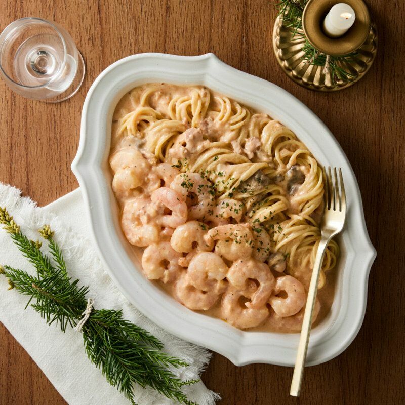 길거리에 캐롤이 울리고 반짝이는 오너먼트로 온 세상이 물드는 이 계절, 우리 집에도 포근한 연말 분위기를 밝혀줄 홈파티 세트를 준비했어요. 부채살 3덩이로 푸짐한 도쿄식 1파운드 스테이크는 양파를 듬뿍 갈아 만든 간장 소스와 달콤한 스위트콘의 조합이 포인트예요. 크림이 꾸덕하게 감기는 투움바 파스타에는 탱글한 통새우를 아낌없이 담아 연말 감성의 한 접시를 완성했답니다.