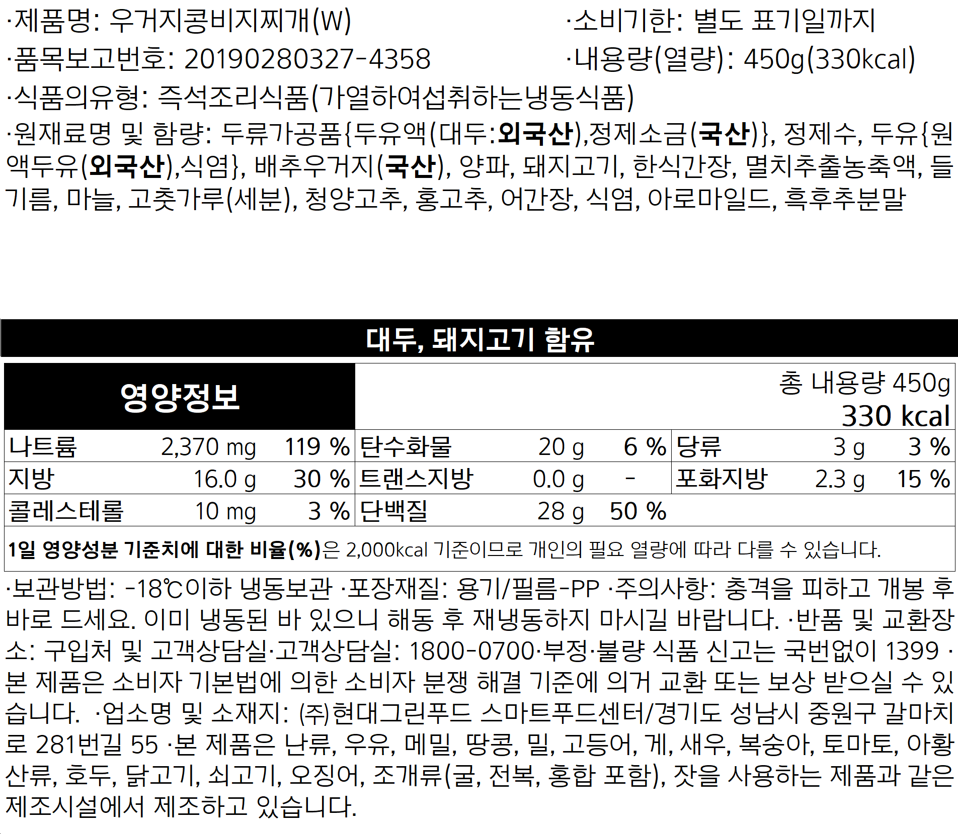 우거지 콩비지 찌개 450g