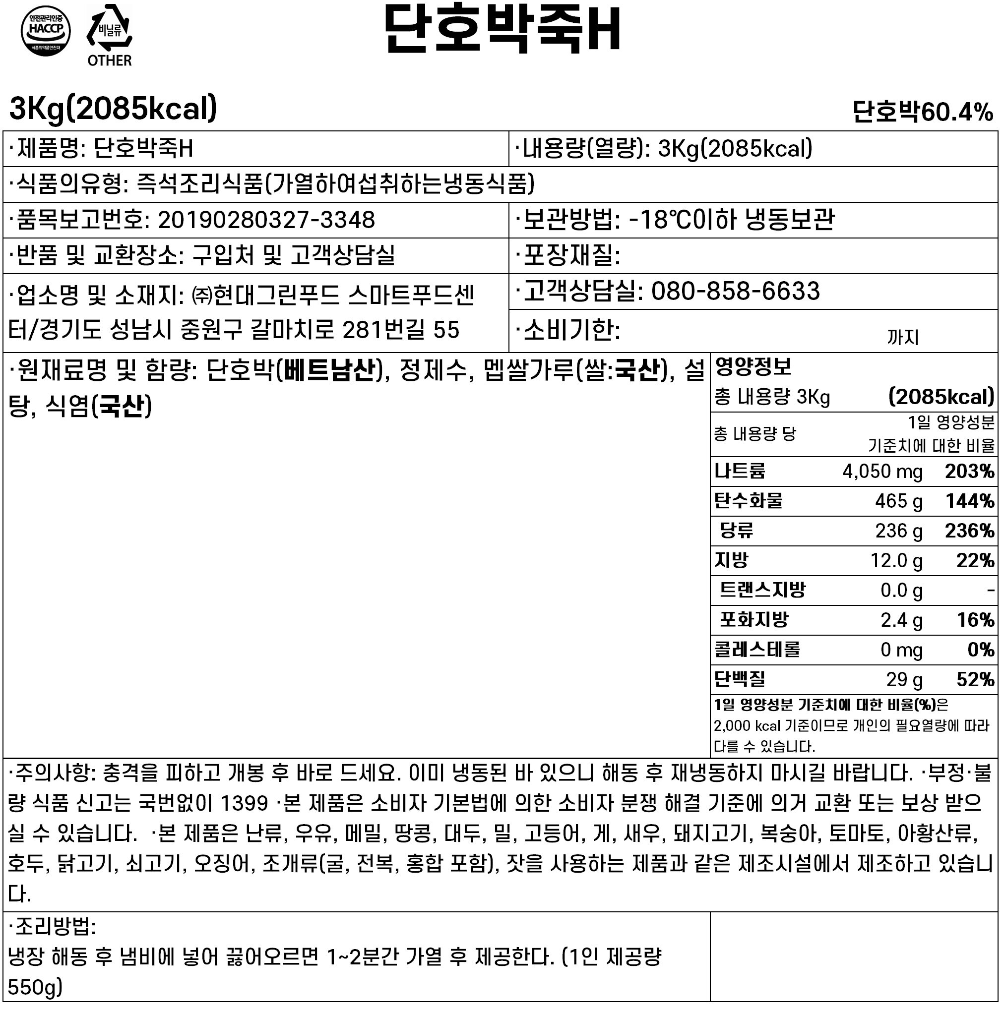 단호박죽 3kg