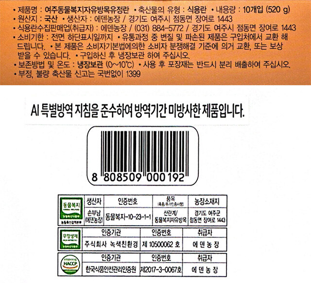여주 에덴농장의 동물복지 자유방목 유정란을 소개해요. 동물복지 인증을 받은 쾌적한 환경에서 방사 사육한 닭의 신선한 달걀만 엄선해 담았어요. 풀, 애벌레, 오가피 발효사료 등 항생제와 산란촉진제 없는 자연 그대로의 사료를 먹여 키워 더욱 안심하고 드실 수 있답니다.
