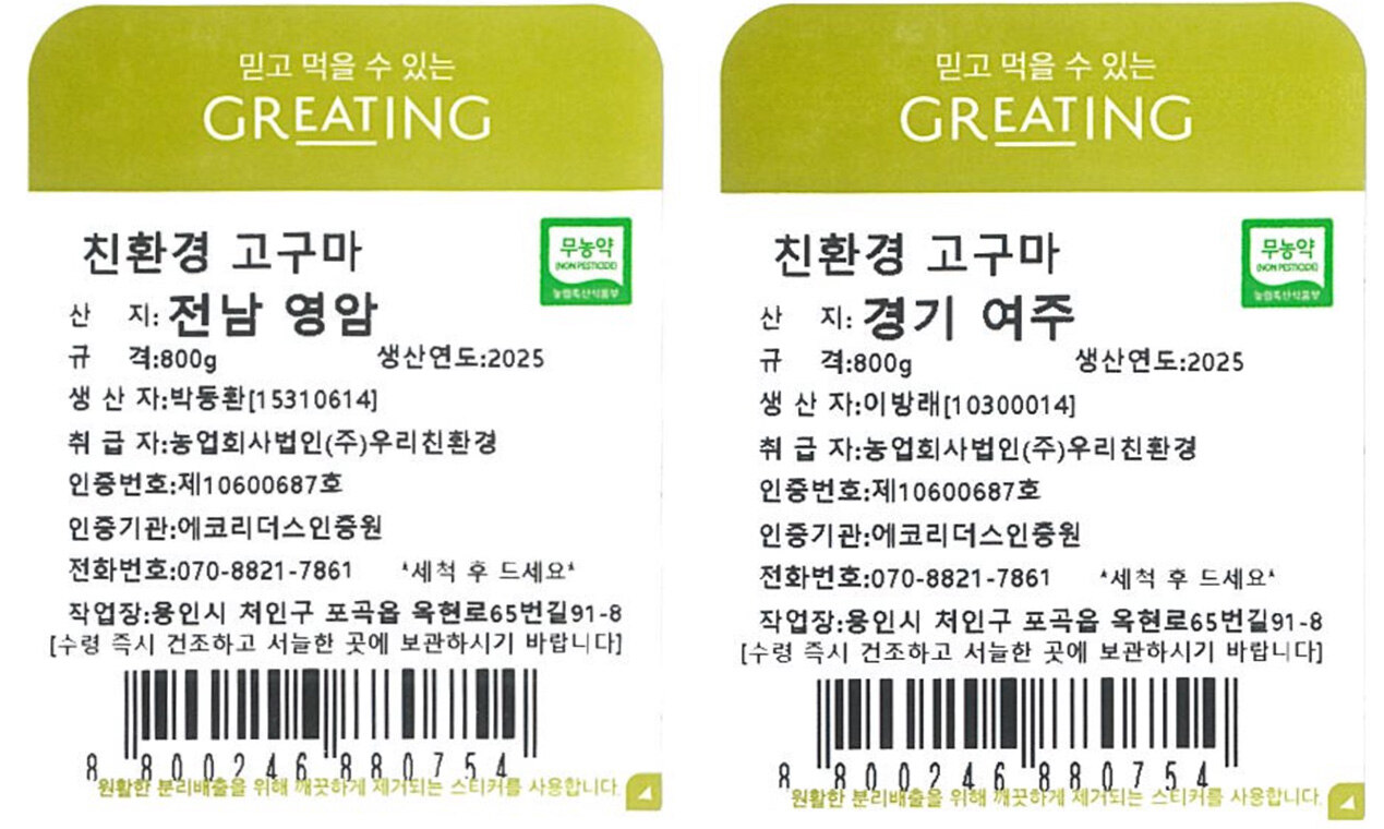 농약 없이 친환경으로 자란 그리팅 꿀 고구마의 황금빛 색깔, 진득한 달콤함을 지금 우리 집 식탁 위에서 만나 보세요.