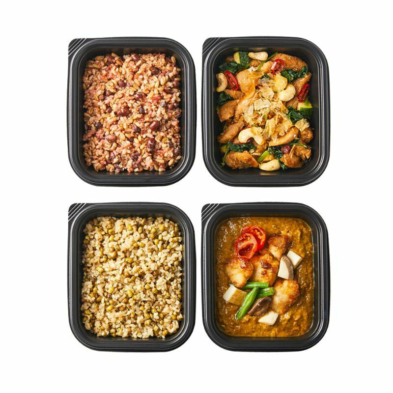 헬씨에이징은 매일의 식사를 통해 자연스럽게 건강을 챙기고 싶은 분들을 위한 도시락이에요. 렌틸콩, 녹두 같은 콩류와 통곡물로 지은 저당 밥으로 당 함량은 낮추고, 영양은 알차게 담았죠.