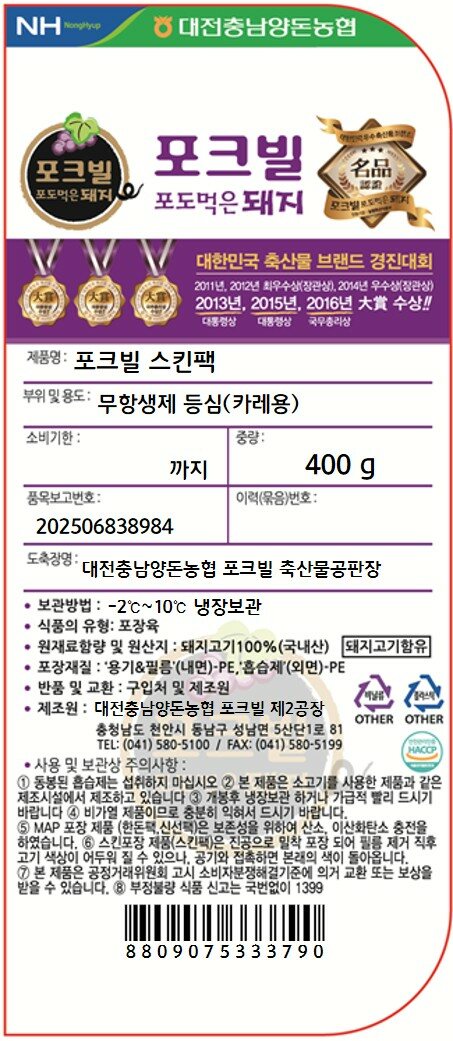 • [포크빌] 무항생제 한돈 앞다리(찌개용) 400g (냉장)