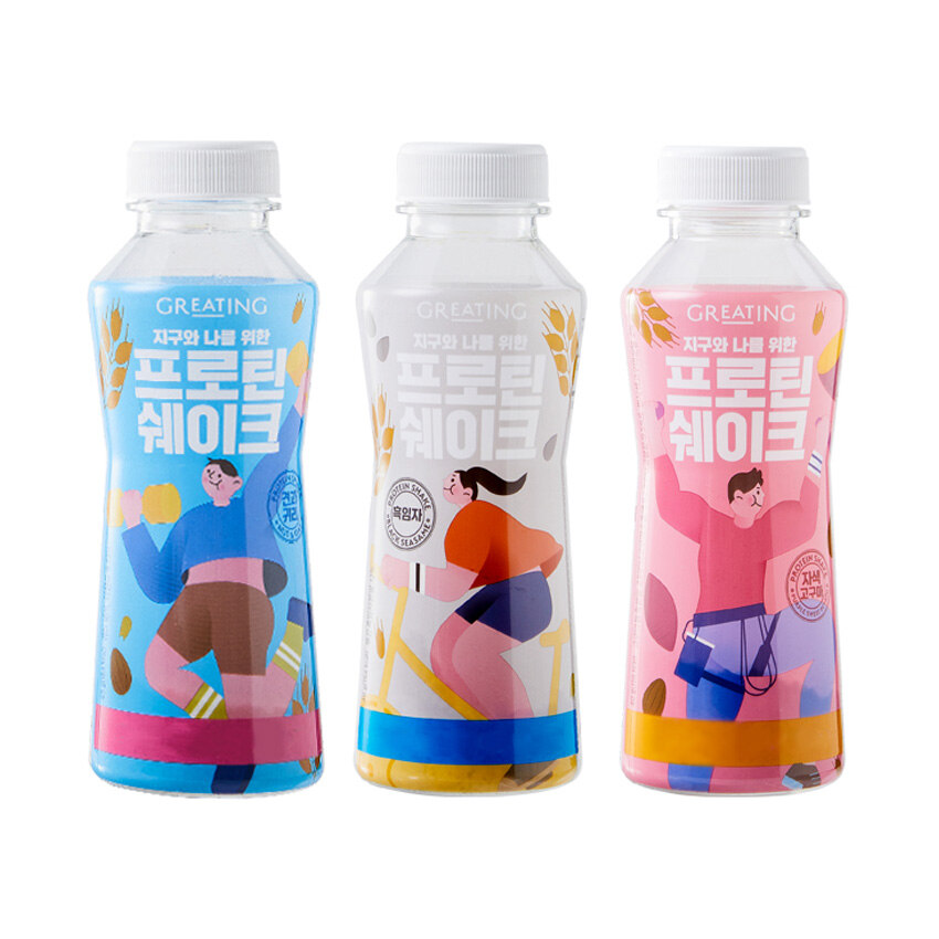 단백질을 맛있고 부담 없이 섭취하고 싶다면 그리팅 프로틴 쉐이크에 주목해 주세요. 그리팅 프로틴쉐이크는 14g의 단백질 을 함유해 든든함이 남달라요. 여기에 깔끔 담백한 견과귀리, 달콤한 자색고구마, 고소한 흑임자 3종으로 각기 다른 입맛까지 챙겼답니다.