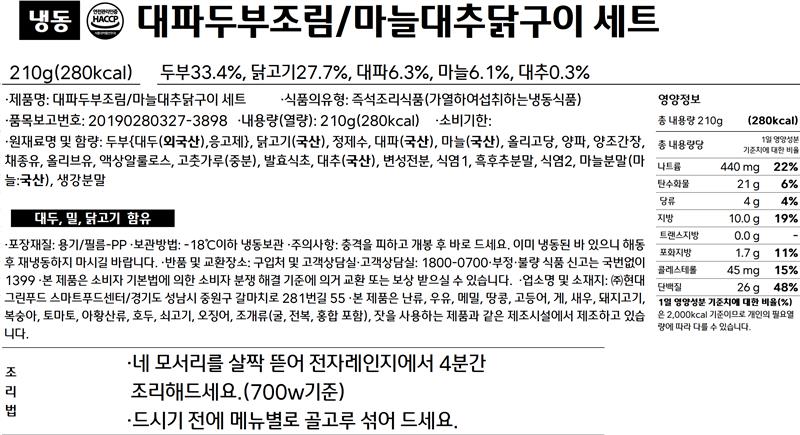 대파 두부 조림 & 마늘 대추 닭살구이 세트