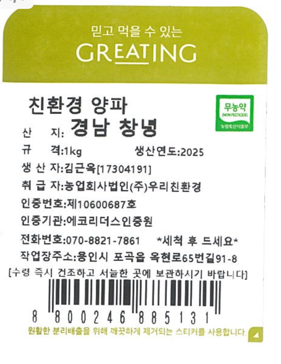 [그리팅] 친환경 양파 1kg