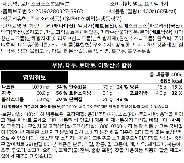 부드럽게 조리 후 한 입 크기로 썬 문어는 진한 로메스코 소스와 어우러져 더욱 특별한 맛을 내요. 푸짐하게 담았으니 균형 잡힌 한 끼 식사가 필요할 때, 전자레인지로 간편하게 조리해 든든하게 즐겨 보세요.