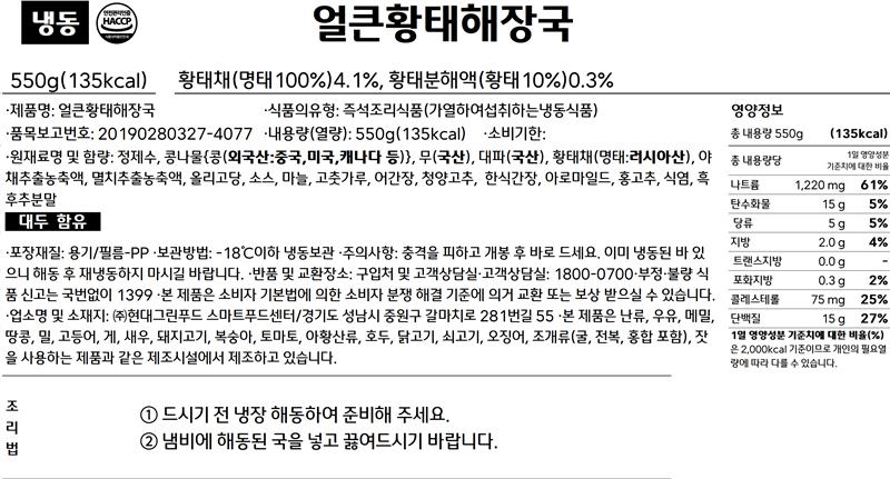 얼큰 황태 해장국 550g