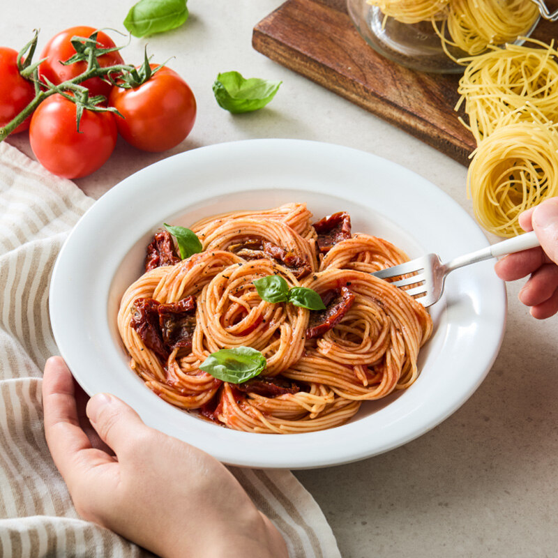 스파게티면 보다 얇은 면으로 둥지 모양을 띄는 까펠리니 엔젤헤어를 소개해요. 육수나 콘소메에 넣어 먹거나 냉파스타나 생크림과 버터, 파마산 치즈로 만든 소스와도 잘 어울려요.